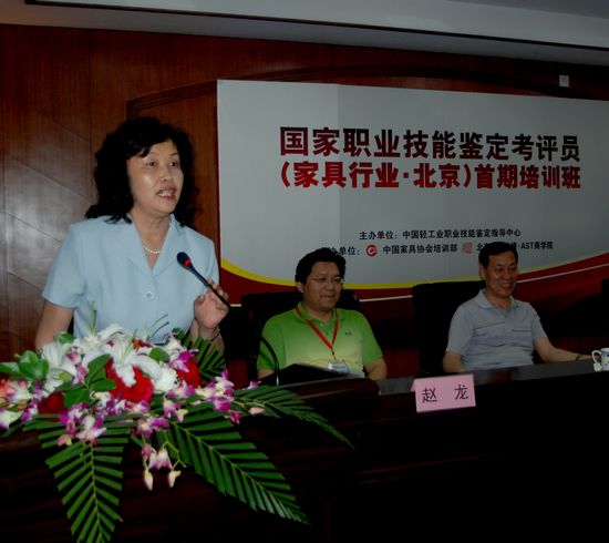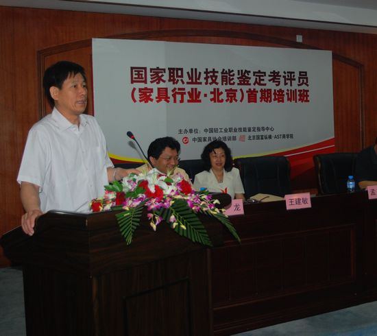 在開班典禮上,中國國家人力資源和社會保障部劉新昌處長針對中國國家職業(yè)技能鑒定工作未來的趨勢和發(fā)展方向做了精彩的報告,輕工業(yè)聯(lián)合會孟琪主任針對如何開展家具行業(yè)技能鑒定工作做了實際意義的報告,兩位領(lǐng)導(dǎo)的精彩報告博得了在場所有學(xué)員的熱烈掌聲。中國家具協(xié)會劉金良副理事長針對此次培訓(xùn)班做了簡短而精煉的發(fā)言,代表中國家具協(xié)會表示有信心把家具行業(yè)的職業(yè)資格認(rèn)證教育發(fā)展的越來越好。北京國富縱橫管理咨詢有限公司國際•AST商學(xué)院作為中國家具協(xié)會的培訓(xùn)部,中國家具行業(yè)職業(yè)資格認(rèn)證教育執(zhí)行機構(gòu)為此次培訓(xùn)班提供精良的會務(wù)保障,總裁趙龍博士在開班典禮上風(fēng)趣幽默的發(fā)言,表示北京國富縱橫管理咨詢有限公司一定會把家具行業(yè)的職業(yè)資格認(rèn)證教育推向高潮,有信心出色地完成中國家具協(xié)會交給北京國富縱橫的任務(wù)。